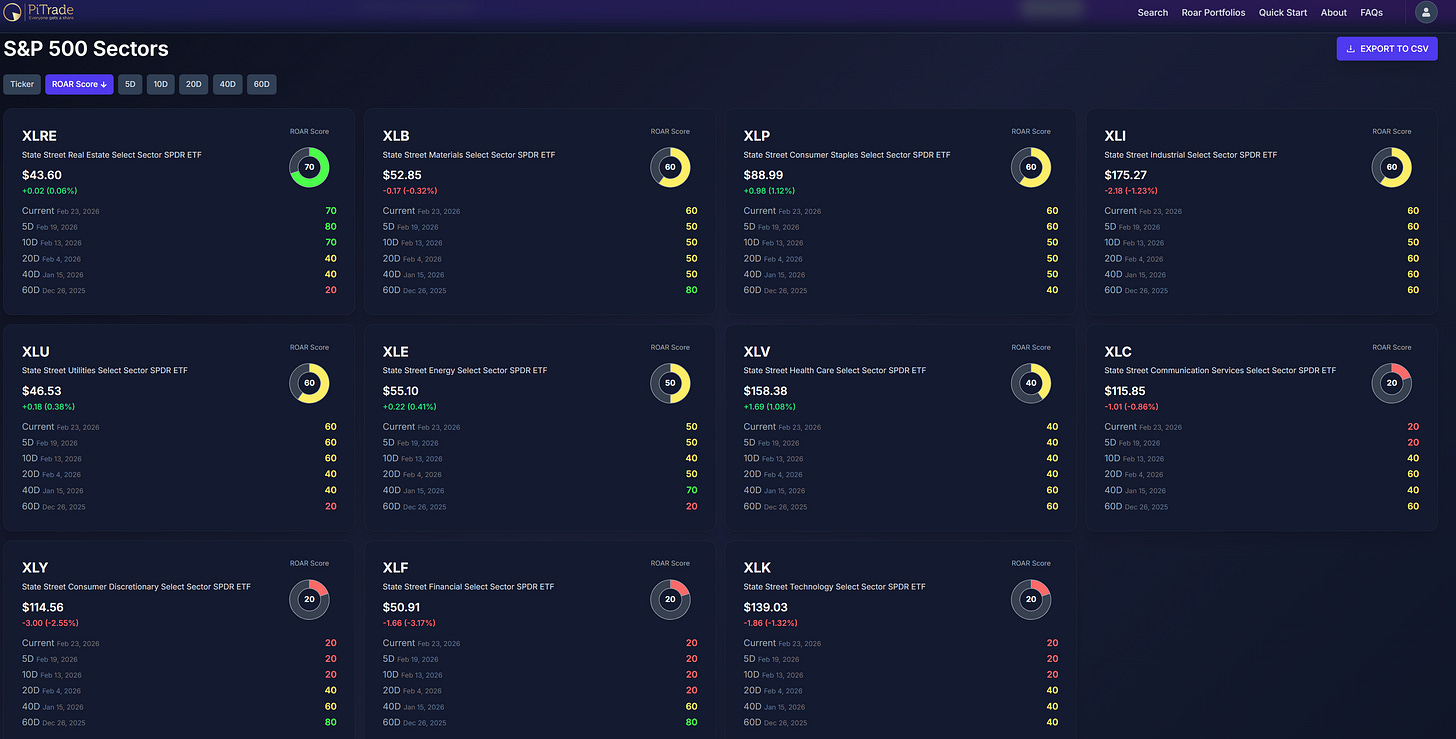 We are hard at work adding new features every day to ROAR.PiTrade.com, the ROAR Score analytics and portfolio creation system that is the product of my decades of staring at charts. I still do a lot of that, but I think many investors, DIY and professional alike, would agree that having a quick, easy, smooth way to analyze lots of ETF and stock information at once is a good thing. That’s what we’ve created.