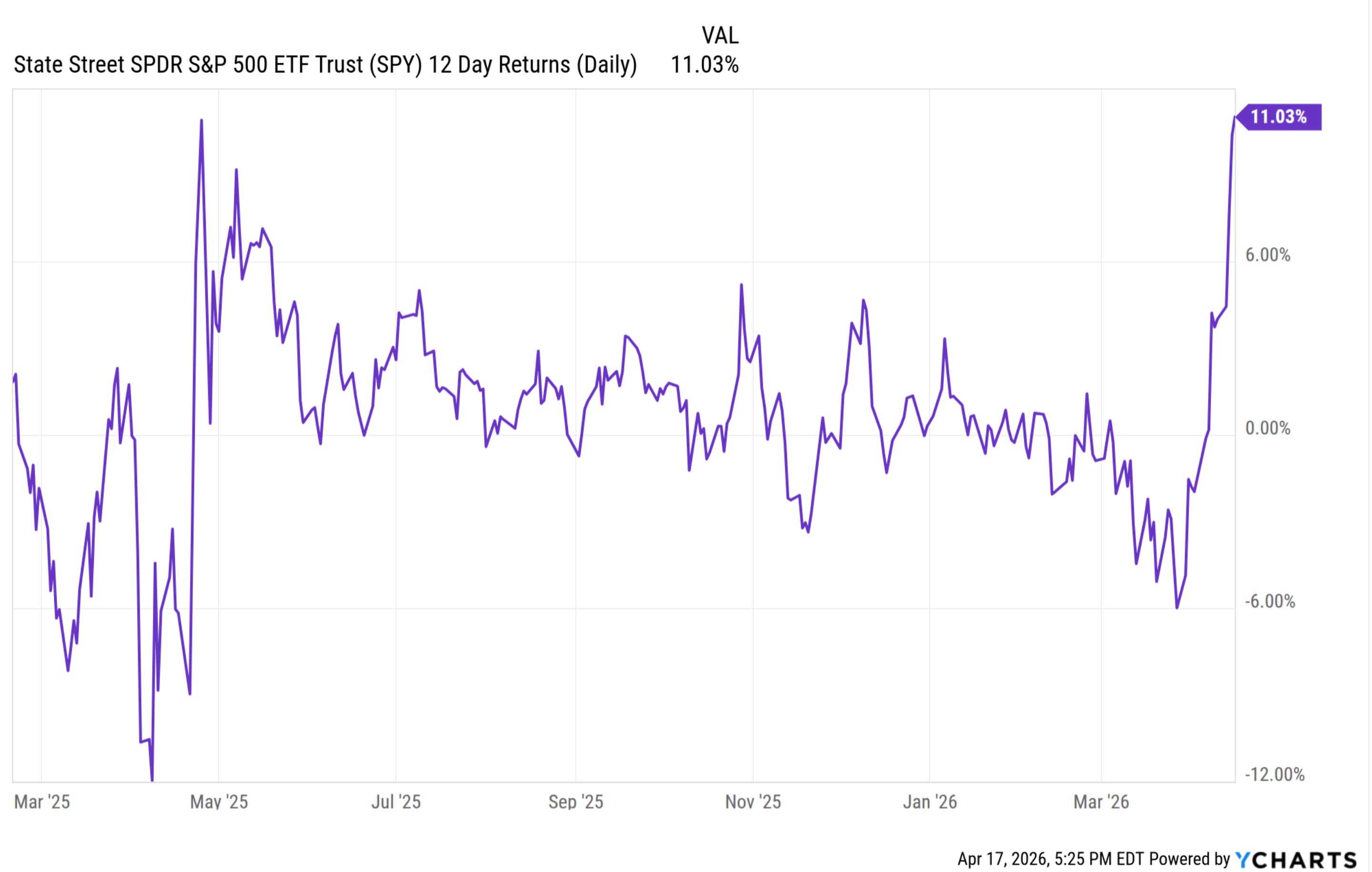 That’s a chart of 12-day returns of the S&P 500 ETF (SPY) since March of last year.