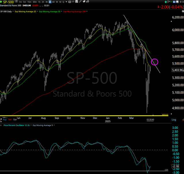 This is the S&P 500's latest "line in the sand" I'm watching. It is a slippery slope up from here, and for a rebound to be taken seriously, I'd need to see the index move toward the 5525-5550 area, give or take. So the next 2% up from here is simply completing the latest round of the same downtrend that got us here from above 6100 just 8 weeks ago. I suppose I'll just sit on my hands until then. OK, not really.