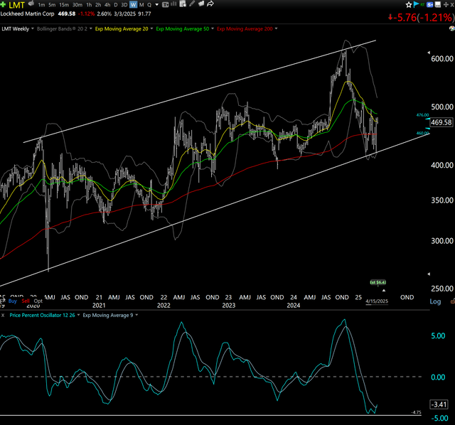 This does seem like one of those parts of the market cycle where defense stocks might suddenly be part of the "in" crowd. LMT has gone from the low 400s to low 600s, and now sits toward the bottom of that range. No strong signal to me yet, but it is, shall we say, on the radar.