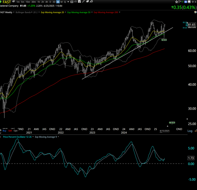 The stock market has been on a "fasting diet" from profit-making so far this year. But Fastenal (FAST) has one of the less-bad charts I see. Perhaps that hints at what I alluded to in my recent appearance on the Seeking Alpha ETF Spotlight podcast in which I cited the industrials sector as one that might come around and have long-term appeal.